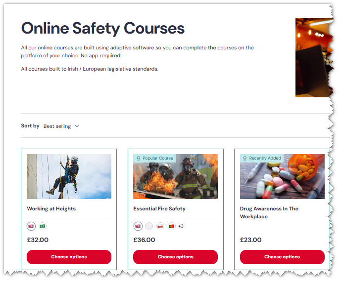 - Online and in-person training courses covering essential topics such as manual handling, fire safety, patient handling, and working at heights.