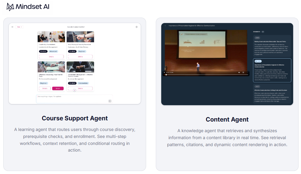 At the heart of this innovation is a seamless integration between LCG’s bespoke SCORM course materials and Mindset AI’s multi‑agent learning technology.